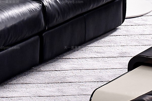 意大利極簡奢現(xiàn)代風(fēng)家具客廳沙發(fā)黑色真皮轉(zhuǎn)角沙發(fā)組合 長方幾