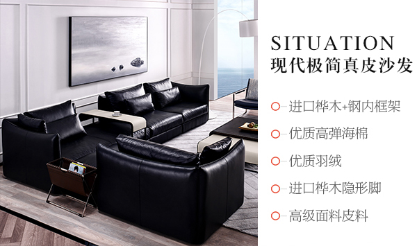 意大利極簡奢現(xiàn)代風(fēng)家具客廳沙發(fā)黑色真皮轉(zhuǎn)角沙發(fā)組合 長邊幾