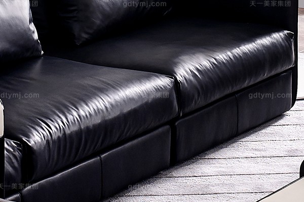 意大利極簡奢現(xiàn)代風(fēng)家具客廳沙發(fā)黑色真皮轉(zhuǎn)角沙發(fā)組合 單人位直背沙發(fā)