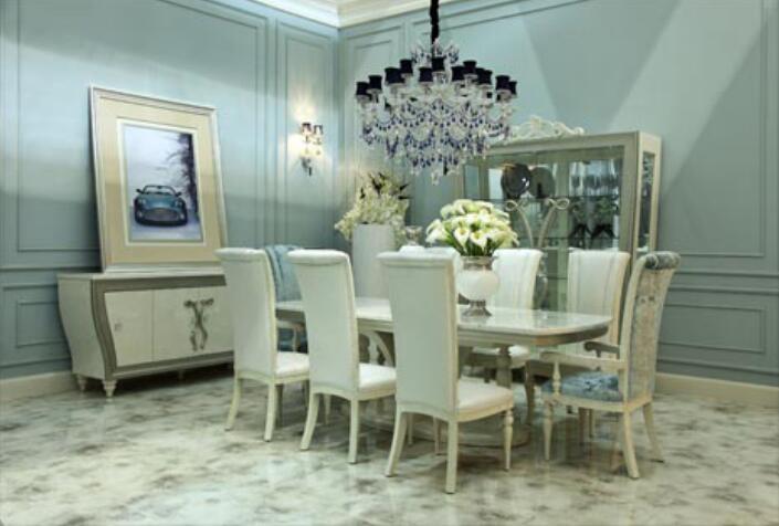 天一美家集團ZRZY品牌馬丁系列源自流行于十九世紀末的新藝術主義,整個系統運用一種反傳統的上大下小的倒錐形充滿失重感的夸張形體,采用鳶尾花藤蔓圖案,通過粗細漸變、彎曲、交叉纏繞等手法,組成一個充滿自然美的不對稱圖案,裝飾于家具表面上;并通過銀箔飾面與奶白雙色油漆以及施華洛士奇水晶,營造一種細膩、自然、充滿活力的時尚之美。