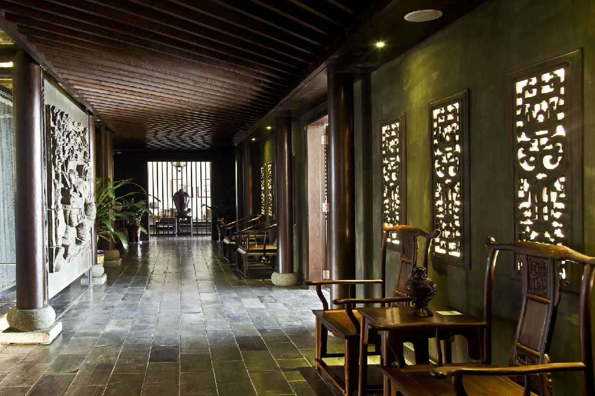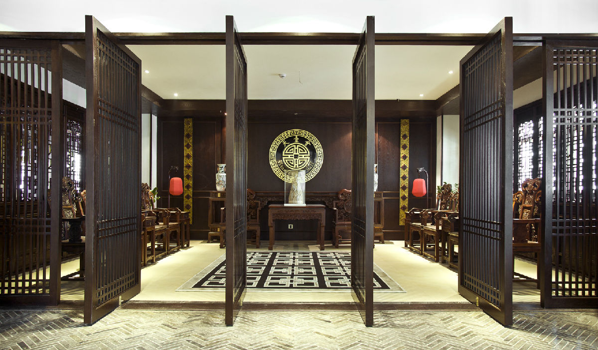 天壹會會所位于集團(tuán)總部大廈六樓,曲徑回廊,格調(diào)典雅,不乏時尚氣息的中式裝潢,以名貴明清紅木家具為主,混搭以歐美經(jīng)典家具,設(shè)有多個宴會包房、品茗室、紅酒窖、雪茄吧、中式元素KTV等高尚餐飲、休閑、娛樂設(shè)施和中堂、中式書房等傳統(tǒng)民居雅間。"縱無茂林修竹、清流激湍,卻有滿堂嘉木、一室幽蘭;最宜樂山樂水、見仁見智,且喜談商論道、近悅遠(yuǎn)來"。會所入目皆是獨具匠心的陳設(shè)布置,充分體現(xiàn)了以客為尊,以商會友!